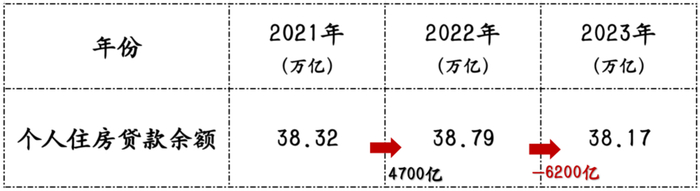 首先,我们看到2023年个人住房贷款余额是38.17万亿元,如果仅看余额,似乎只是比去年少了6200亿。