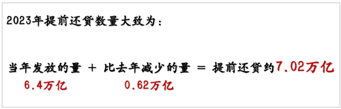 所以一边在多发另一边贷款余额又在减少,大概率中间缺失的部分,其实是被提前还贷抵消掉了。于是整个2023年提前还贷的数量应该是: