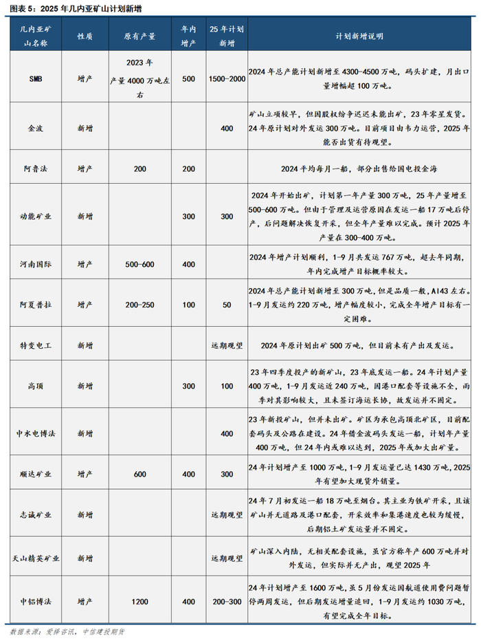 几内亚矿山今年增产幅度较大,2025年仍有增产预期,预计有3000-3500万吨增量。同时预计25年澳洲矿石进口增量预计100-150万吨。