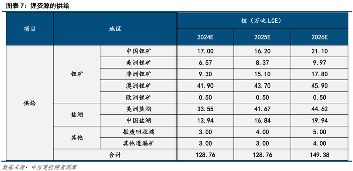 对2025年供应端预测:资源量149.4万吨,较2024年增加20.62万吨。其中增量贡献:新项目包括sigma2期、Goulimina1期、Bougouni、Mariana盐湖、Centenario-Ratones;爬产扩产项目包括九岭、新疆有色、kamativi2期、Liontown-Kathleen、Wesfarmers-Holland、盐湖股份。