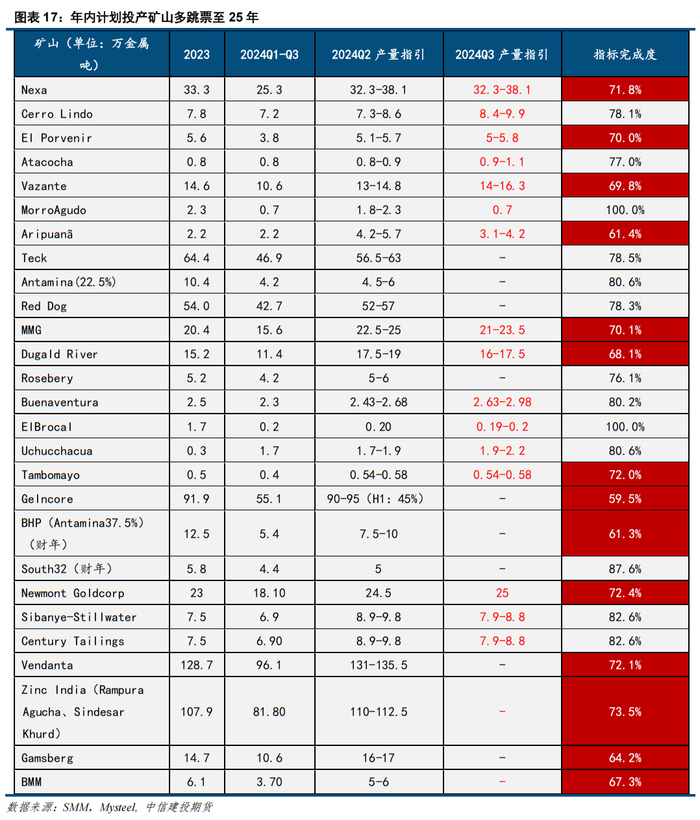 成本端:海外主流矿山悉数投复产,国内火烧云兑现增量;节奏上25年H1爬产,25H2矿端释放增量,全球锌矿增速或在7%左右,H2矿端供应压力陡增,TC兜底的锌价成本支撑削弱。