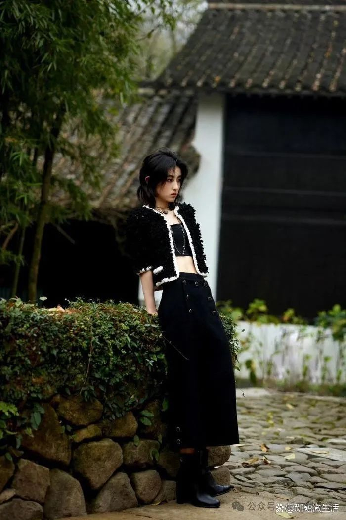 张子枫的造型选择了干练的短发,搭配一件抹胸黑色外套,完全展现出她青春洋溢的气质和自信的姿态。西湖边的寒风虽凛冽,但丝毫没有影响她的风采。她身着时尚外套,搭配秋季的气息,带给观众的不仅是美丽的风景,更是她健康生活态度的展现。