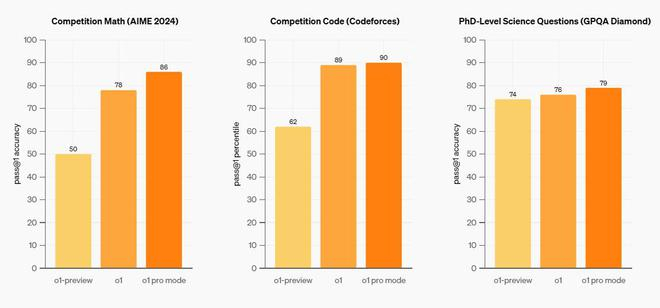 o1 pro mode在数学、科学和编码方面强于o1 且更可靠