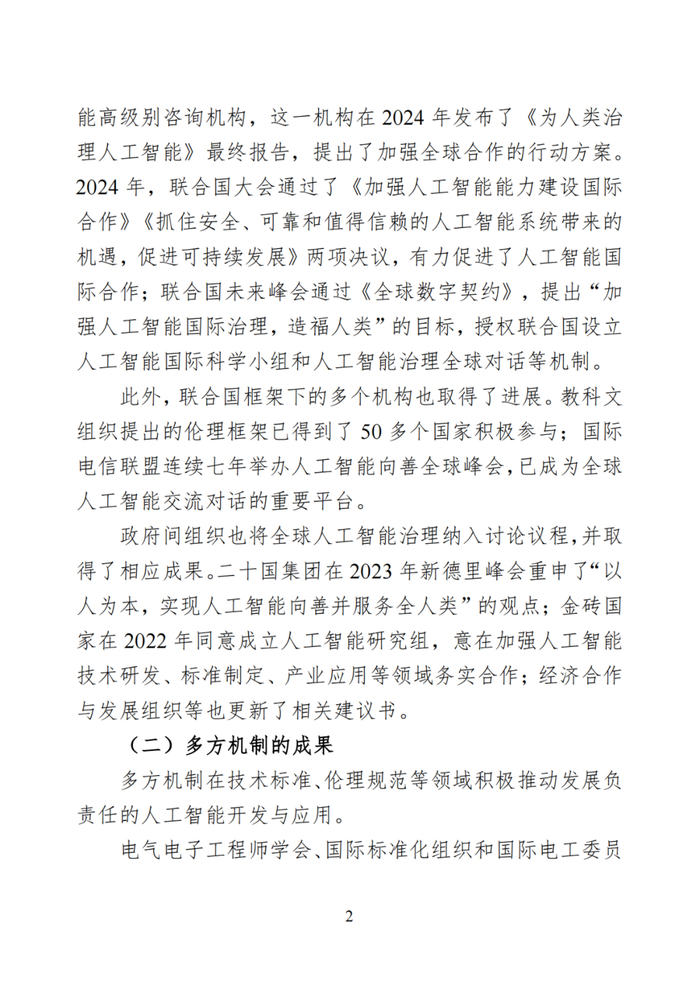 2024年,世界人工智能大会发布了《人工智能全球治理上海宣言》,呼吁全球共同推动AI健康可持续发展。中国还在第19届联合国大会期间发布了《人工智能能力建设普惠计划》,倡议成立“人工智能能力建设国际合作之友小组”。