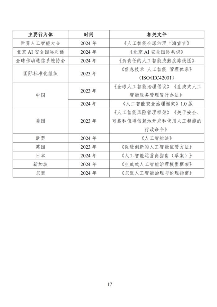 此外,一些国际组织和会议论坛也在加快行动。世界经济论坛成立了AI治理联盟,提出了负责任地开发、开放创新和国际合作等建议。世界互联网大会人工智能工作组发布了《发展负责任的生成式人工智能研究报告及共识文件》,致力于推动发展负责任的AI。