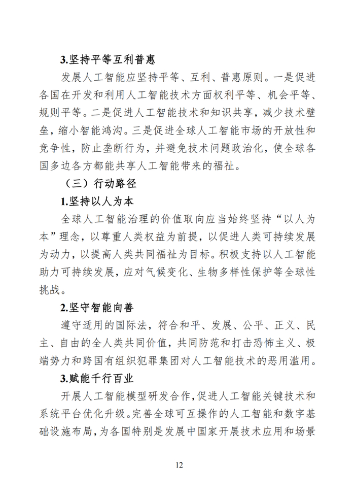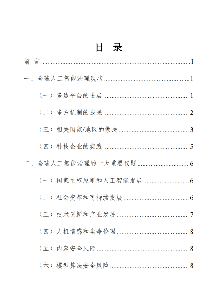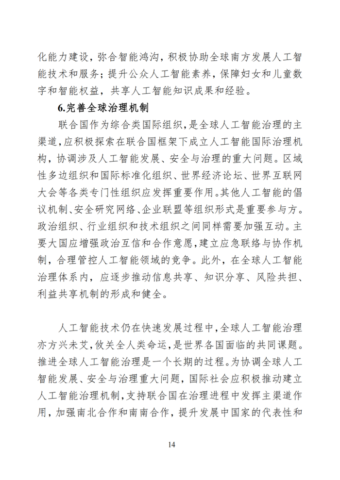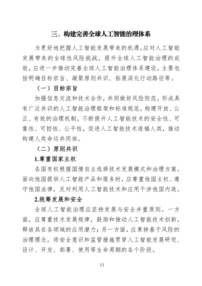 为了应对上述挑战,报告呼吁建立更加开放、公正且有效的治理机制。首先,应明确目标宗旨,即加强信息交流和技术合作,共同做好风险防范,形成具有广泛共识的人工智能治理框架和标准规范。其次,需要凝聚原则共识,包括尊重国家主权、统筹发展和安全、坚持平等互利普惠等基本原则。最后,则是通过坚持以人为本的价值取向、坚守智能向善的原则、赋能千行百业的实际行动、防范应对安全风险的有效措施、加强国际合作能力建设以及完善全球治理机制等方式,逐步推进全球人工智能治理体系的建设。