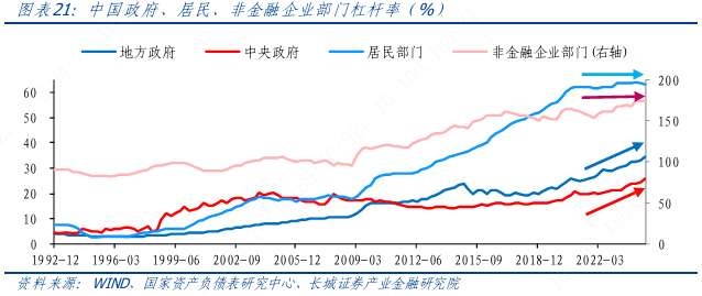 另外,我国的非金融企业部门中有一部分是地方融资平台,这意味着部分地方政府隐性债务或以企业杠杆的形式存在。根据 WIND 数据,2024 年末我国城投平台有息负债余额为 39.6 万亿元,约占非金融企业部门债务余额的三成。我们认为随着新一轮化债的开启,非金融企业部门杠杆率或也将有所下降。