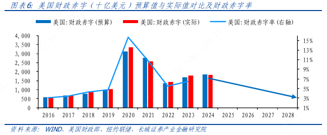 就财税政策而言,特朗普团队的赤字削减计划的落地可能会是“慢变量”,对内减税+对外加关税可能有助于削减财政贸易双赤字,提高国内供给的同时给需求降温,但能否及时、有效对冲关税带来的通胀冲击尚不确定。美国2024财年的财政赤字1.83万亿美元,赤字率率为6.4%,高于2022年的 6.2%。根据美国下届财政部长贝森特在竞选时推行的“3-3-3”政策,包括到 2028 年将预算赤字削减到占国内生产总值(GDP)的3%、通过放松管制推动GDP增长至3%,并每天额外生产300万桶石油。马斯克主导的“政府效率部门”更提出要通过“废止规章、精简行政和节约成本”来帮助削减财政支出。我们认为这一系列计划较为长远,对 2025 年的影响可能不大,并且驱逐移民、放松监管等政策推行期间反而可能短期增加财政支出。
