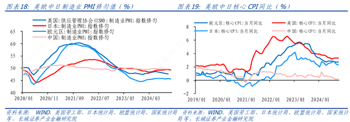 日本经济增长和货币政策仍在向正常化迈进,日央行加息可能是一个长期趋势。日本核心CPI同比已连续三年维持在2%以上,其制造业PMI也处在全球主要经济体偏高水平,表明其经济回归正常化的趋势较为确定。但在其他主要国家利率下降的背景下,日本央行的加息节奏可能与国内大选情况及欧美经济的发展情况有关。我们认为随着日央行加息的节奏明朗,日元、日股或有望偏强震荡。