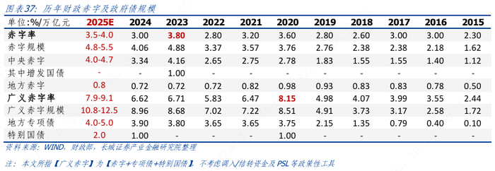 我们预计2025年,赤字率有望提升至3.5%-4%,对应赤字规模或在4.8-5.5万亿元,主要是中央赤字可能迎来较大提升;进一步考虑地方政府专项债或新增4-5万亿元和特别国债或新增2万亿元(长期项目建设和国有大行注资),广义赤字规模或在10.8-12.5万亿元,对应广义赤字率7.9%-9.1%。2023年末增发1万亿国债、3.8%的赤字率成为近十年高点,而广义赤字率在2020年最高达8.1%。若2025年赤字率、广义赤字率突破前高,或将释放较强的逆周期调节和财政思维调整的信号。对应国内资本市场风险偏好或有望抬升,债市可能阶段性回调。