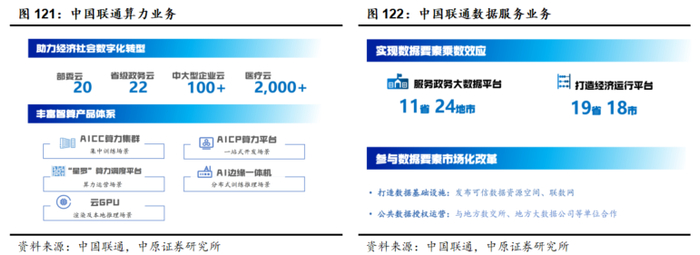 公司持续提升联通云通算、智算、超算自主产品能力,在通用算力“5+4+31+X”广泛布局的基础上,推进智能算力“1+N+X”梯次布局,构建以算力为核心的一体化算网融合生态体系,打造数字经济“第一算力引擎”;加快数据中心业务转型发展,优化客户结构,深耕细分行业市场;做大产业互联网自研产品收入规模,推进自主服务能力及体系建设,量质并重做大做强数科集成业务;发挥中国联通大数据服务原创技术和实践优势,参与国家和地方数据基础设施建设,服务数字中国建设和数据要素市场化配置改革;推进AI+行动,联合产学研用各方加快场景和商业模式创新,加快大模型产业化、规模化发展。公司坚持数智融合应用规模化发展,增强专精特新数智能力,发布格物Unilink工业互联网平台AI+计划,迭代5G专网4.0和AIoT产品矩阵,赋能工业互联网、数字政府、车联网等重点行业数智应用;提升一体化安全运营服务和“安全荟”产业链安全云市场业务规模(公司公告)