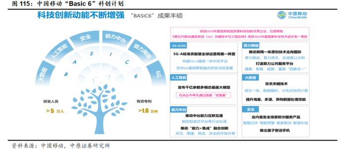 公司是全球网络规模第一、客户规模第一、收入规模第一、创新能力领先、品牌价值领先、公司市值领先、盈利水平领先的通信和信息服务提供商。主营业务涵盖移动语音、短彩信、无线上网、有线宽带、物联网等连接服务,数据中心、云计算、内容分发网络、算网融合等算力服务,以及基于人工智能、大数据、安全等新一代信息技术能力的平台、应用和解决方案。公司积极推进大数据价值转化。推进数据标准制定,积极参与编制国家高质量数据集分类分级、人工智能数据集格式等标准,推动形成行业统一的“数据目录”,实现数据标准化和共享复用。构建全球规模最大的通信服务数据集群——梧桐大数据平台,自主清洗、精标形成超5万亿 tokens(词元)高质量数据集。推进数据技术创新,带动产业链上下游攻关湖仓一体、数据编织、分布式协同计算等关键技术,提升海量、多源、异构数据的处理效能。(公司公告)