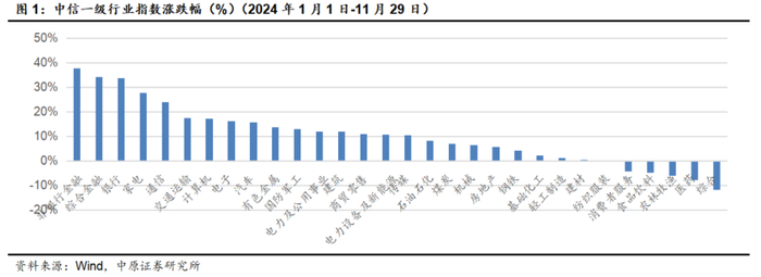 截至2024年11月29日,通信(中信指数成分股,下同)行业指数上涨24.02%,在全部30个中信一级行业指数中排名第5位。