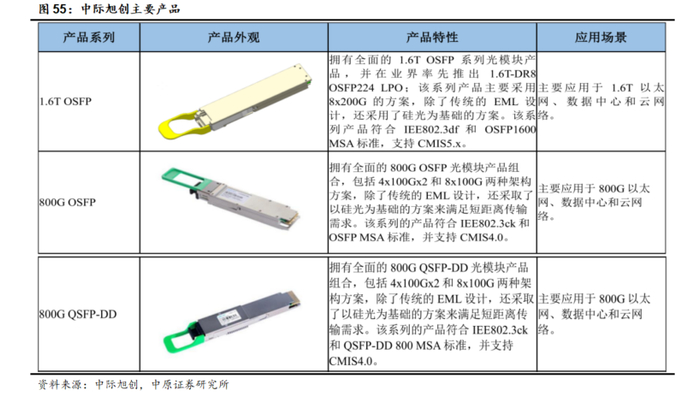 公司主营业务为高端光通信收发模块的研发、生产及销售,产品服务于云计算数据中心、数据通信、5G无线网络、电信传输和固网接入等领域的国内外客户。公司注重技术研发,并推动产品向高速率、小型化、低功耗、低成本方向发展,为云数据中心客户提供100G、200G、400G、800G和1.6T的高速光模块,为电信设备商客户提供5G前传、中传和回传光模块,应用于城域网、骨干网和核心网传输光模块以及应用于固网FTTX光纤接入的光器件等高端整体解决方案,在行业内保持了出货量和市场份额的领先优势。公司已全面完成1.6T光模块前期的送测和认证工作,预计从2024年12月开始出货。在LightCounting发布的2023年度光模块厂商排名中,中际旭创排名全球第一。(公司公告,LightCounting)