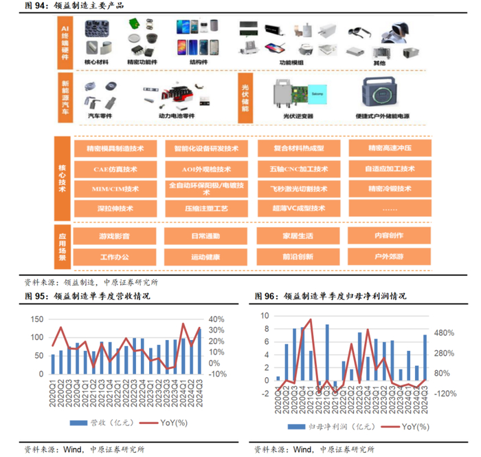 作为世界领先的AI终端硬件领域的核心供应厂商,公司在全球范围内提供AI终端设备所需的精密功能件、结构件、模组等业务的产业链一站式智能制造服务及解决方案。公司具备模切、冲压、CNC和注塑等工艺流程的技术,电子相关产品下游应用涵盖智能手机、笔记本电脑、可穿戴设备、XR等AI终端设备领域。公司是精密制造行业中极少数同时覆盖了上游原材料、中游精密功能件和结构件、模组及充电器业务的一站式智能制造商之一,产品应用于AI终端及通讯产品、新能源汽车及光伏储能等多个下游市场。目前公司在生产技术工艺、产品品质及综合运营效率等多方面均已达到世界先进水平,并向超高精度、高性能和高附加值的方向发展。(公司公告)