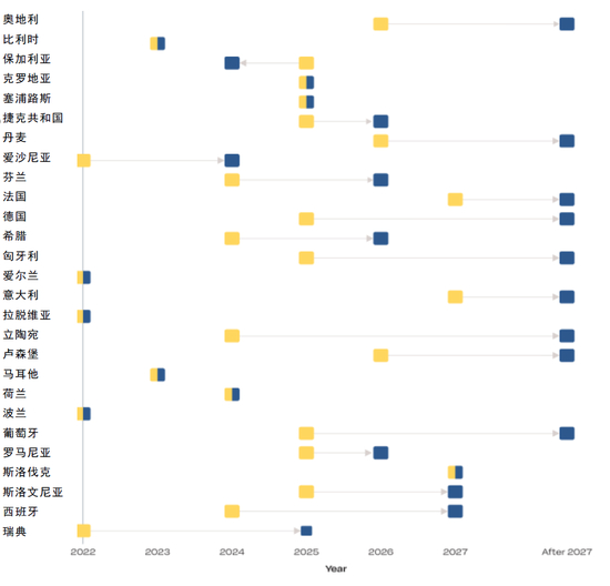 注:黄色标识为NECP2022年设定完成时间;蓝色标识为NECP2023年设定完成时间
