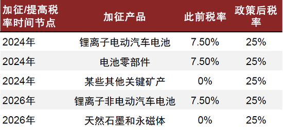 301关税政策将在2026年针对储能电池加税[1],我们预计或将带来2025年储能抢装潮。美国时间2024年5月14日,拜登政府公布301关税调整结果,其中针对电池方面,锂离子非电动汽车电池(包含储能电池)的关税将于2026年从7.5%提升至25%。我们认为在当前较好的经济性及未来储能电池成本提升的预期下,2025年美国储能领域或将迎来抢装潮。
