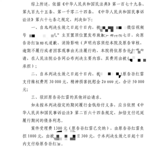 最终,法院判决自本判决生效之日起十日内,被告颜某某在其微信视频号“xx那点事儿”主页置顶位置发布致歉声明持续七日,向原告孙红雷赔礼道歉、消除影响,另,被告某某向原告孙红雷支付维权费用30000元、精神损害抚慰金20000元,合计50000元;驳回原告孙红雷的其他诉讼请求。