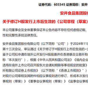 12月2日,“速冻一哥”安井食品宣布公司启动H股上市计划,计划在香港联合交易所上市。这一决定已通过董事会与监事会审议,并将在未来18个月内择时完成。