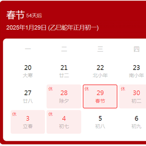 二、春节:1月28日(农历除夕、周二)至2月4日(农历正月初七、周二)放假调休,共8天。1月26日(周日)、2月8日(周六)上班。