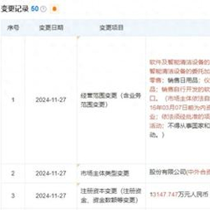 天眼查数据显示,近日石头科技发生工商变更,经营范围新增人工智能应用软件开发、人工智能基础软件开发、人工智能理论与算法软件开发、软件开发、软件销售、智能机器人的研发等,注册资本由1.31亿元增至1.85亿元。