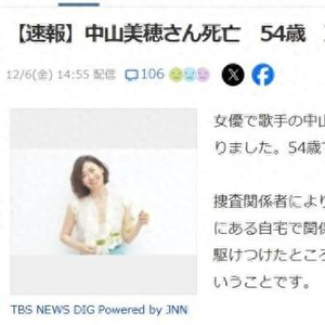 中新网12月6日电 据日本TBS新闻网报道,当地时间6日,日本女演员、歌手中山美穗被发现已在自己家中去世,终年54岁。