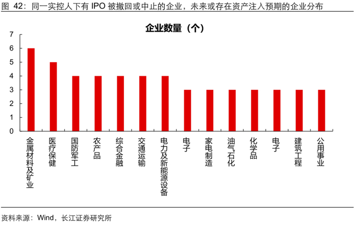 线索三:同一实控人下有 IPO 被撤回或中止的企业,未来或存在资产注入的预期。IPO 与重大资产重组同样作为企业的融资手段,随 IPO 逐渐放缓,资产注入或成为企业另一融资手段,因此我们筛选 2021 年以来同一实控人下有 IPO 撤回或中止的企业,未来或存在资产注入预期。
