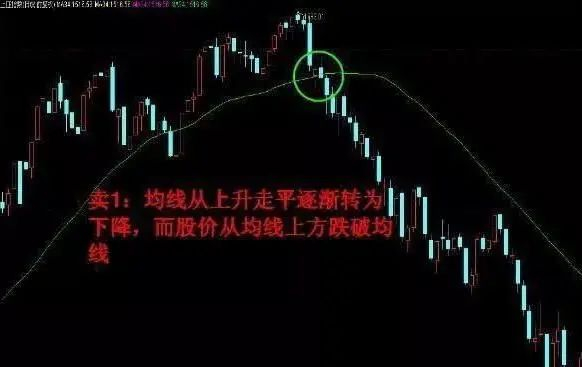 上图a的位置, 均线从上升走平逐渐转为下降,价格从均线 上方跌破均线时——卖出