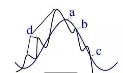上图d的位置, 价格急速上涨,远离向上运行均线时,随时会 回落——短线可卖出