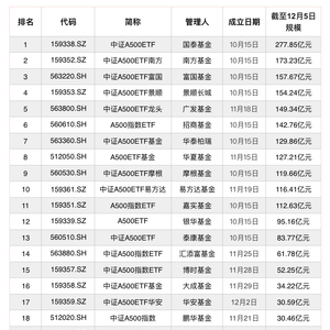 12月上市的多只中证A500ETF,首日出现净赎回。