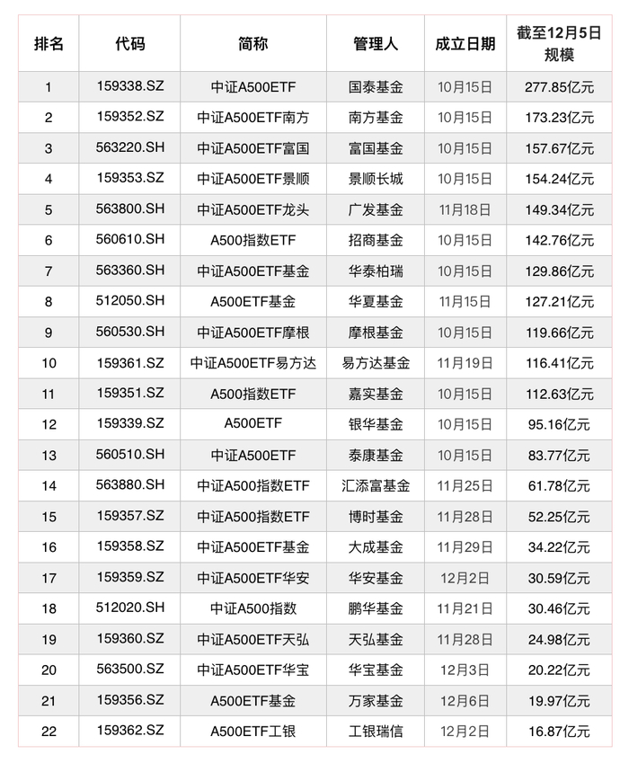 22只中证A500ETF,全部上市