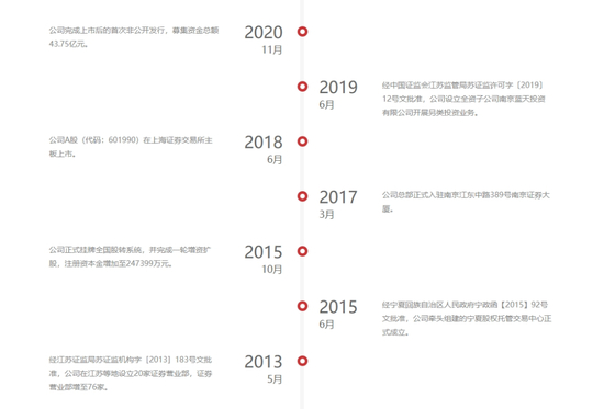 在南京证券官网披露的企业大事记中,一共披露了公司成立以来的30则重大事件。在这些重大事件中,除了在1990年获批成立、正式开业两则重大事件,其他重大事件,步国旬都曾亲身参与其中,包括完成并购西北证券、并购控股南证期货有限公司(原湖北金龙期货经纪有限公司)、发起设立富安达基金管理有限公司、完成上交所主板上市等。