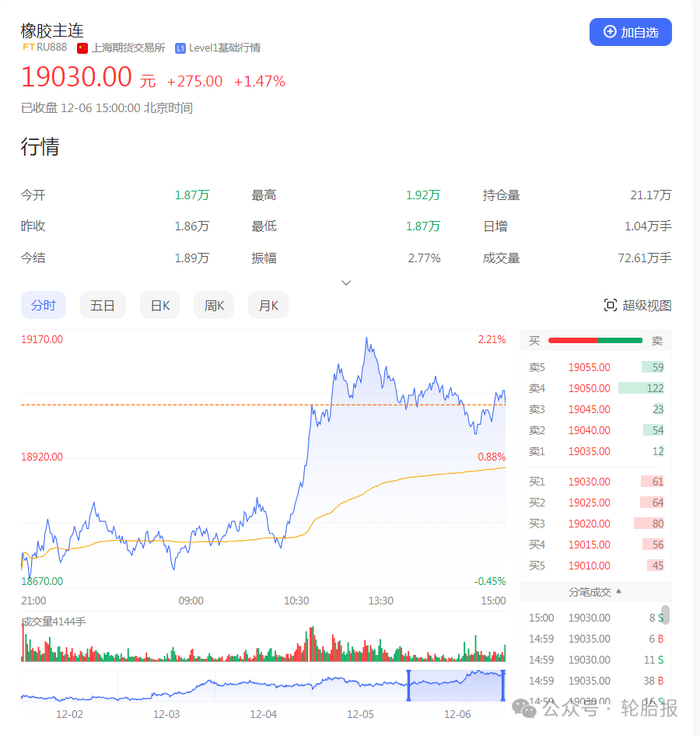 今日,橡胶市场主力合约价格再度大幅上涨,成功突破19,000点大关,高位触及19,200点附近。同时,天然乳胶现货价格也持续攀升。20号胶的表现尤为抢眼,刷新了今年的最高纪录,飙升至15,920点。即便是通常走势较弱的合成橡胶,也出现了跟进上涨的趋势。
