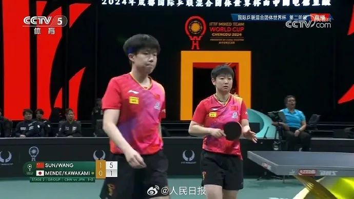 2024年成都国际乒联混合团体世界杯第二阶段,国乒vs日本队。王楚钦/孙颖莎2-1战胜日本队选手川上流星/面手凛。