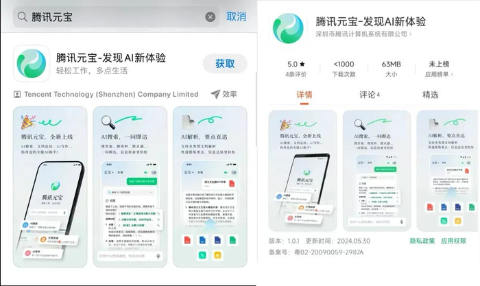 比如,在AI搜索方面,腾讯元宝接入了微信搜一搜、搜狗搜索等搜索引擎,覆盖微信公众号等腾讯生态内容及互联网权威信源,扩展了用户在专业复杂话题下的信息。