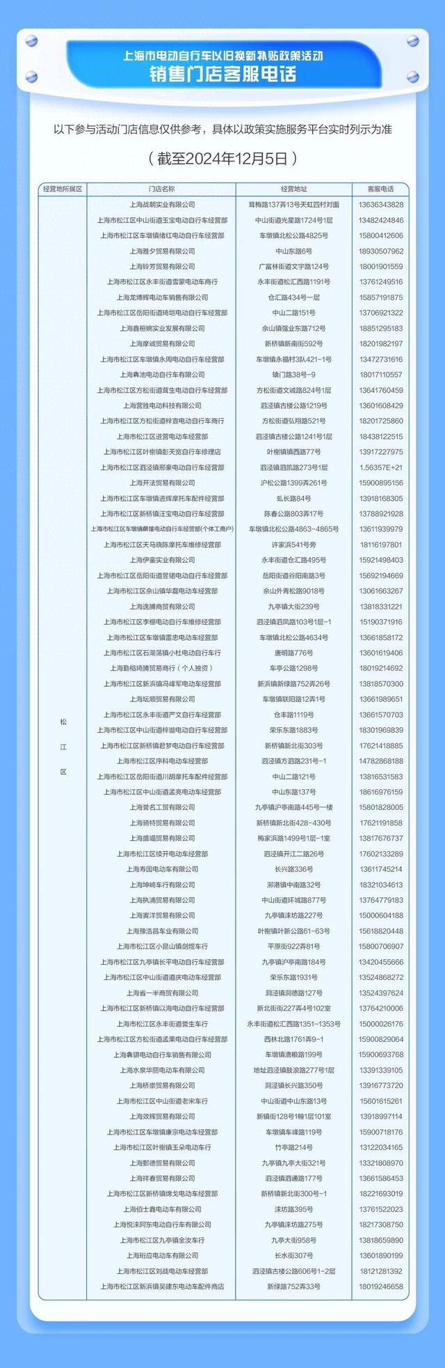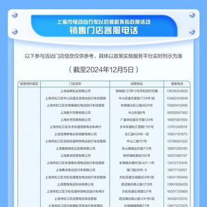 本市其他区电动自行车以旧换新补贴政策销售门店清单请戳↓