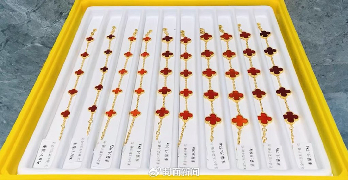 近日,奢侈品牌梵克雅宝对深圳水贝市场的“四叶幸运”系列高仿产品出手。当地市场监管局也同意酌情给予涉嫌侵权商户宽限期,以完成整改和下架。
