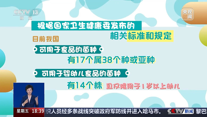 根据国家卫生健康委发布的相关标准和规定,目前我国可用于食品的菌种,有17个属38个种或亚种,可用于婴幼儿食品的菌种有14个株,且仅限用于1岁以上幼儿。