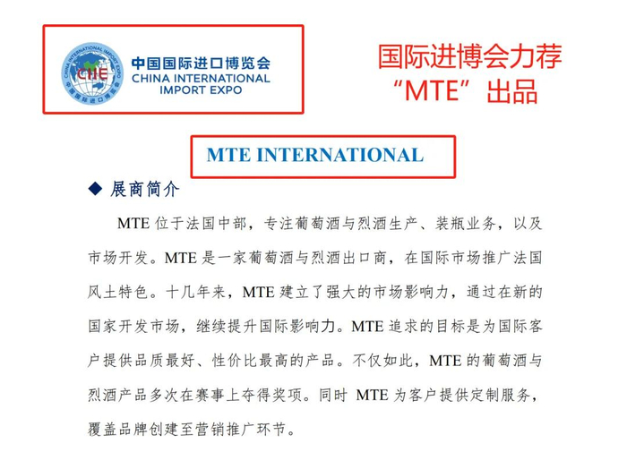 1、法国原瓶进口,来自国际进博会力荐、法国大酒商之一的MTE。