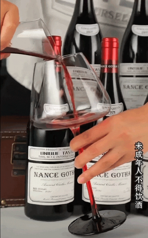倒入杯中,缓缓流动中折射出迷人的光晕,葡萄的芳香,岁月的精华,如同一段优雅的旋律,慢慢汇聚在晶莹剔透的红酒杯中。