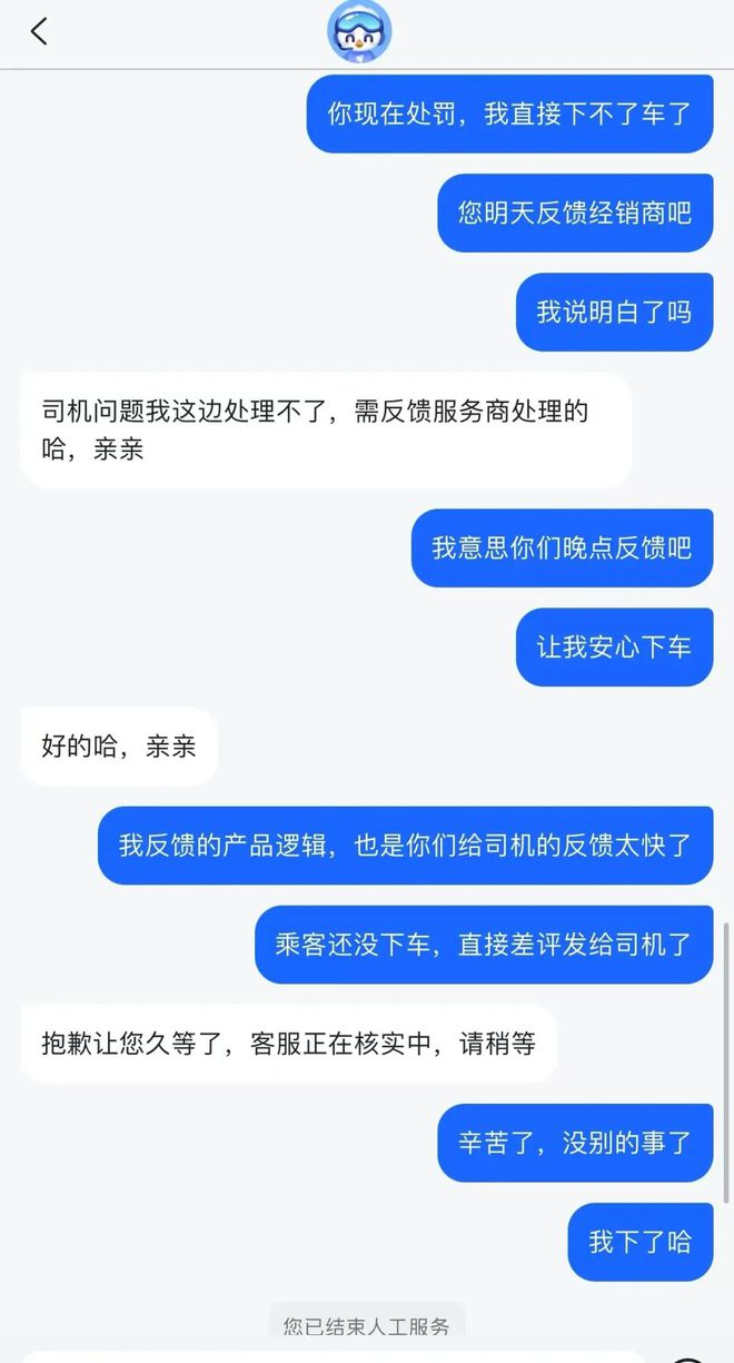 陈晨认为,乘客在未结束行程时,平台将乘客投诉的情况反馈给司机,易引起司机情绪,造成矛盾。