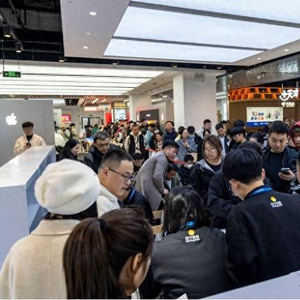 苏宁易购南京新街口店、京东五星电器南京新街口店等多家线下电器商城内,人头攒动、格外热闹。苹果专柜前,即使在工作日,也会排起长队,一直持续到晚上。现场工作人员表示,连日来都是如此景象,购买苹果手机等产品,排队等待时间需要至少一小时……