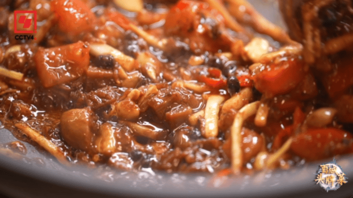 广西老友鱼可谓广西老味道,鱼肉口感紧实,酸咸辣鲜俱全,颇受当地人欢迎。制作时,先将剑骨鱼入锅油炸,随后便是最关键的一步—炒制酱料。老友酱用酸笋、豆豉、蒜米等原料一起炒香,再经过一段时间发酵,味道浓厚。放入高汤煮至冒泡,随后让鱼与老友味在锅中完美邂逅!