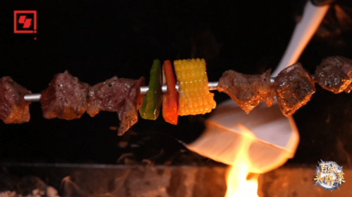 一米牛肉串选用优质牛肉,经鲜榨木瓜汁腌制,再加入黑胡椒、海盐及橄榄油抓拌,与新鲜蔬菜搭配,穿到一米长的铁签上架炉翻烤,食物直接与火接触的香味最为诱人。