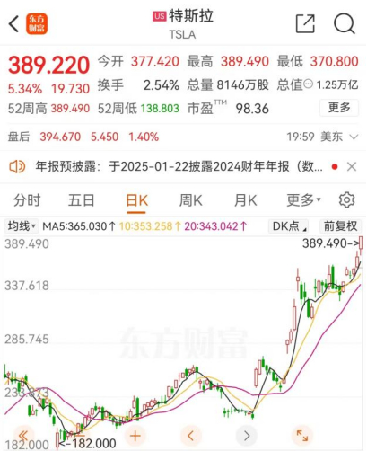 本周五,特斯拉的股价大涨5.34%,收于389.22美元,市值报1.25万亿美元。今年以来,特斯拉累计上涨56.6%。随着特斯拉股价的飙升,公司CEO马斯克的身价也达到了一个新的里程碑。