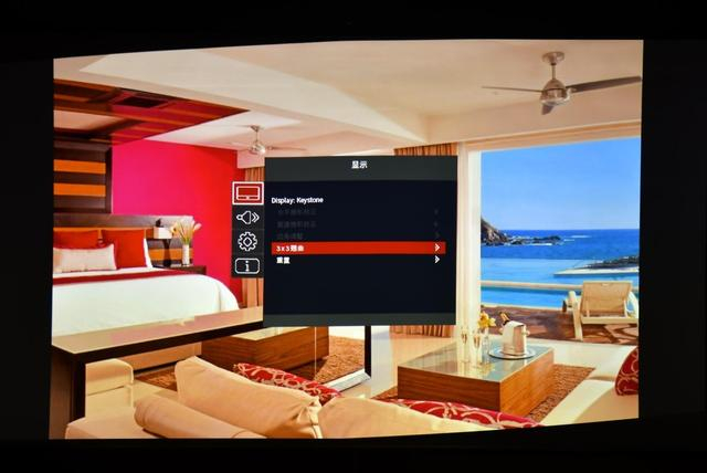 同时优派PZ2318支持多种画面校正功能。水平、垂直梯形校正自然不用说,它还同时支持曲面校正,四角校正等功能,可以根据投影环境进行多种调试,适合多种家庭环境。