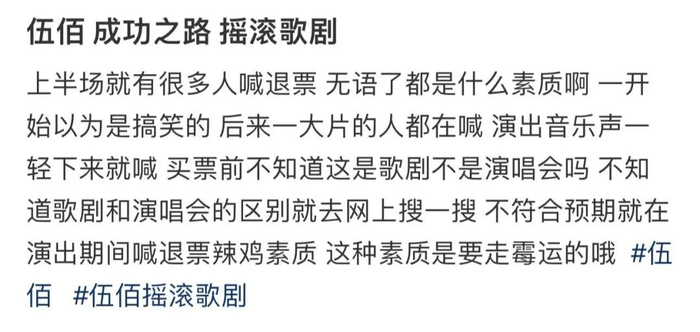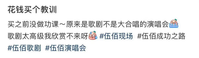 也有人表示是自己在购票前没有看清楚,“买之前没做功课,原来是歌剧,不是大合唱的演唱会。”