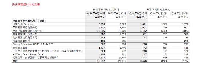 汇丰控股2024年三季报