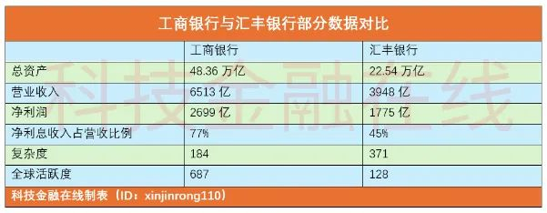 如果金融稳定理事会的打分还较为抽象,那么对比一下汇丰与工商银行的财报也可以看出一些端倪。