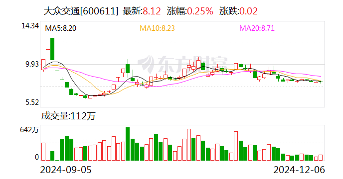 2024年下半年至今,大众交通(股票代码:600611)的股价强势上行,截至12月7日,涨幅约两倍,成为行业内的热门股。这一切的背后,是智能出行等高科技新质生产力为这家以出租车业务起家的传统交通企业带来了新的想象空间。大众交通董事长杨国平表示,智能出行是公司数字化转型的一个关键词,而大数据产业则是公司发展新质生产力的另一个关键词。